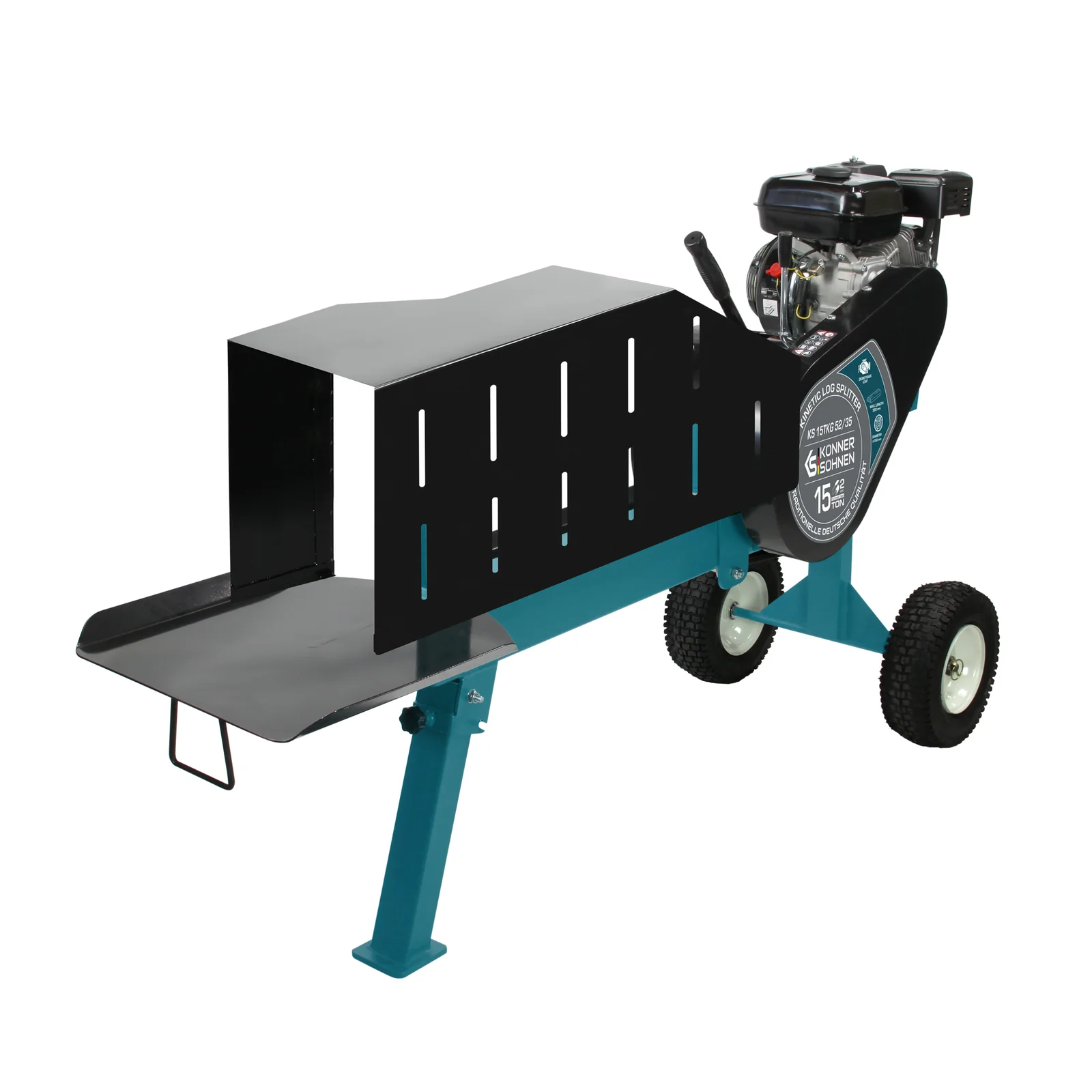 Maksimaalne ohutus ja kasutusmugavus on tagatud:Kahe kangiga juhtimissüsteem tagab suurema operaatori ohutuse. Könner & Söhnen KS 15T-PC kaitsev metallvõre kaitseb kasutajat prahi, näiteks lendavate laastude ja väikeste puutükkide eest, mis tekivad lõhestamise ajal. KS 8-15Table on loodud operaatori mugavuse suurendamiseks. See seade hoiab lõhestatud palgid mugaval töö kõrgusel. Iga palgilõhestaja komplektis on polükarbonaatprillid ja kaitsekindad.