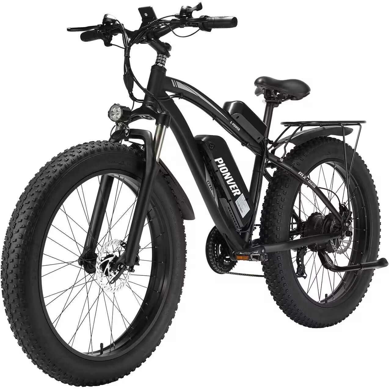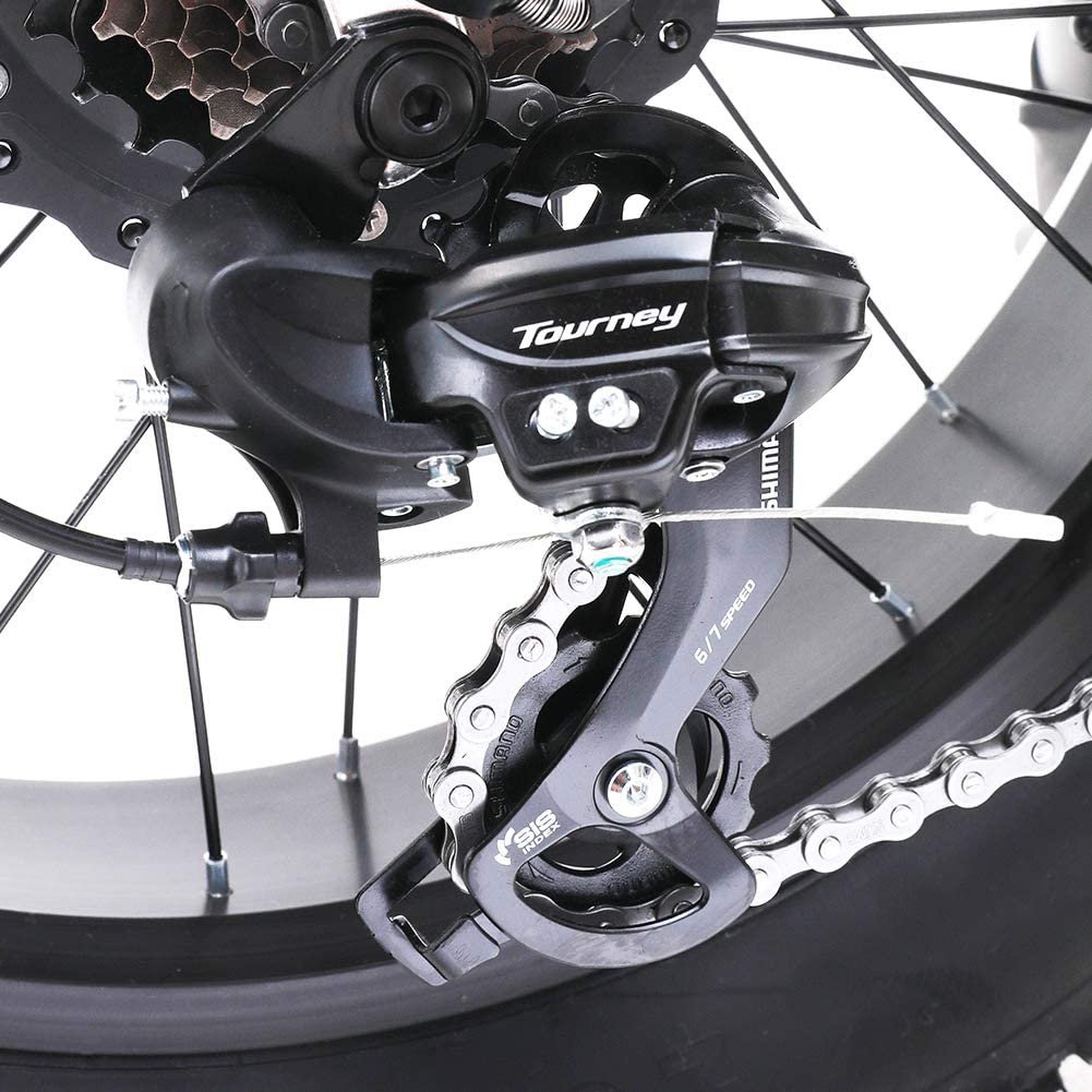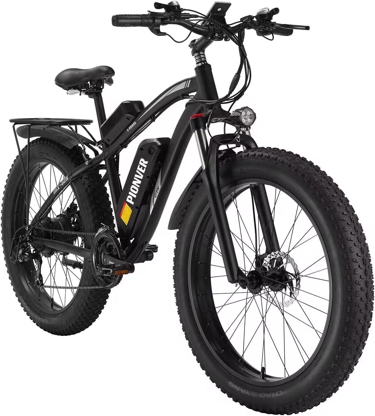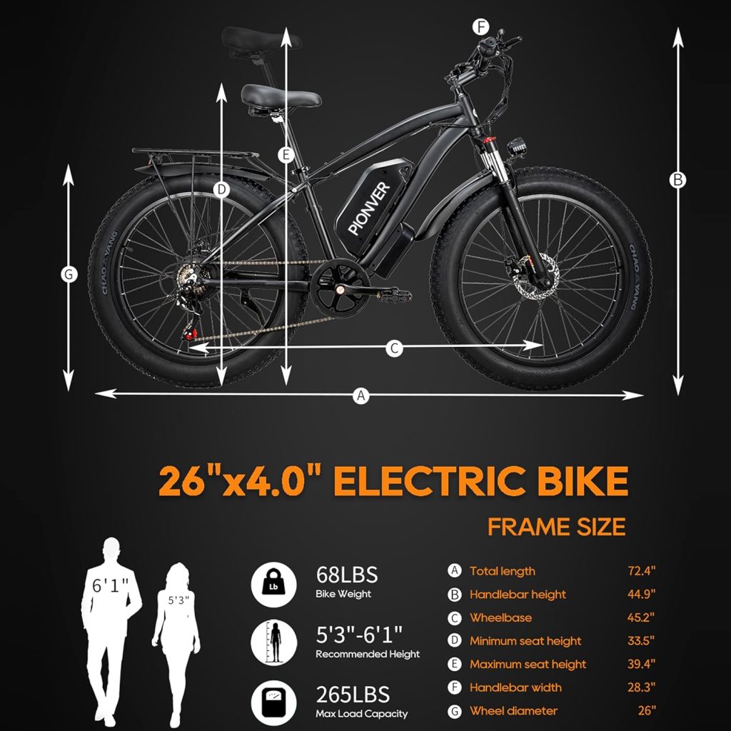 26 x 4,0 tollised FAT-rehvid E-Bike – Liigu lihtsalt liivas, lumes või teel. Raam on valmistatud vastupidavast 6061 alumiiniumisulamist, täissuspensiooni pakub sujuvat pehmendust ja löögisummutust, kui sõita ebatasastel maastikel, nautides sõidu ajal stimulatsiooni.