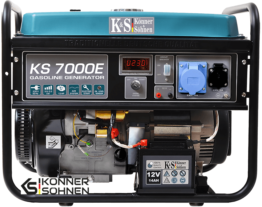 Bensiinigeneraatori KS 7000E pikaajaline töökindlus on tagatud tänu sellele, et toode on varustatud 100% vaskmähisest koosneva kvaliteetse sünkroonse vahelduvvoolugeneraatoriga ning Könner & Söhnen seeria mootoriga. Lihtne käivitussüsteem ja ergonoomiline juhtpaneel teevad kasutamise mugavaks.