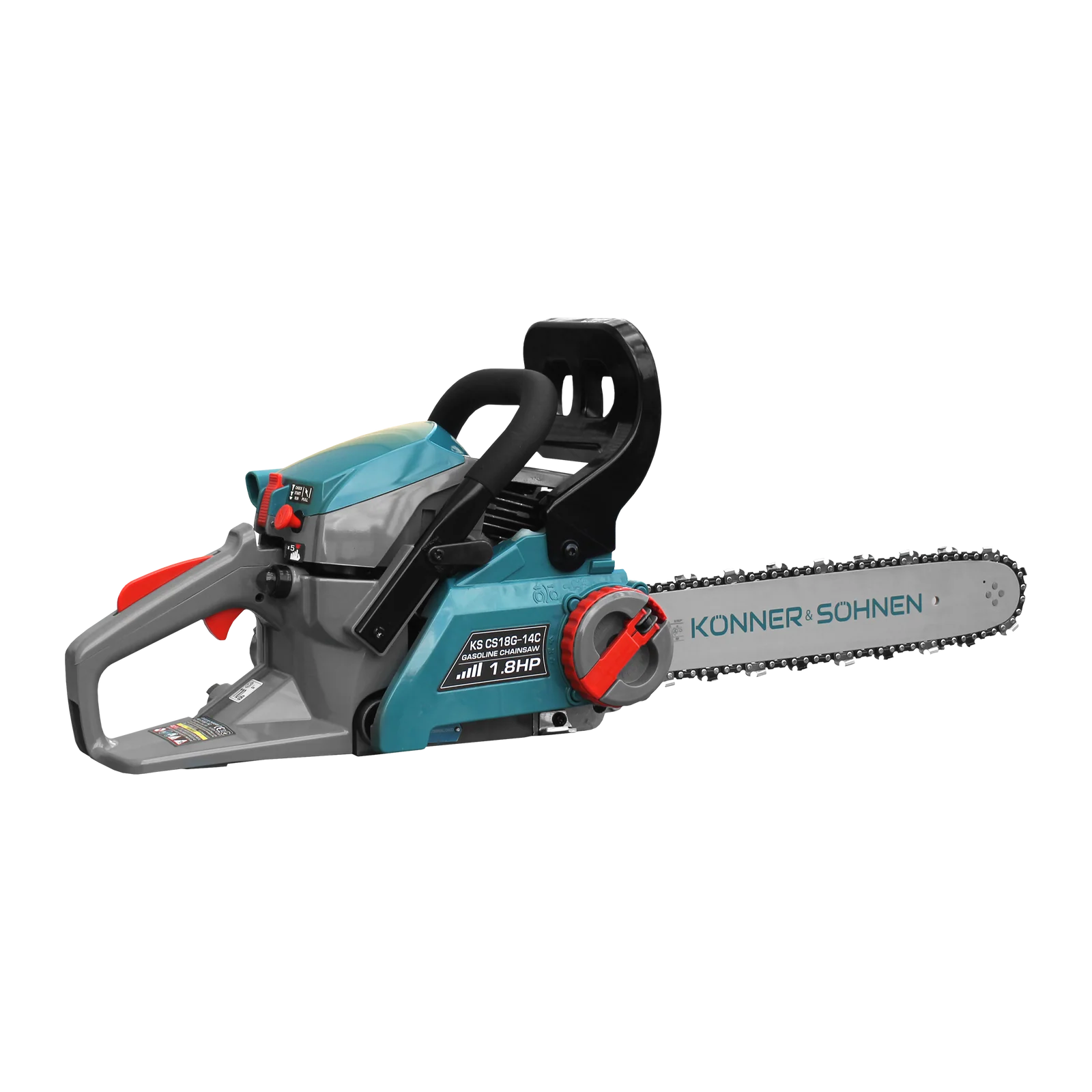 Saksa brändi Könner & Söhnen® bensiinimootorsaag KS CS18G-14C (35 cm latt, 1,35 kW, 13000 p/min) — usaldusväärne tööriist koduseks kasutamiseks. Usaldusväärne mootor tagab tõhusa kütuse põlemise. Kiire ligipääsuga filtri klamber lihtsustab hooldust. „Suvi/Talv” režiimid kaitsevad karburaatorit jäätumise eest, samas kui inertsipidur peatab keti koheselt. Mugavusfunktsioone täiustavad automaatne STOP/START nupp, tööriistavaba keti pingutamine, „Easy Start” süsteem, ergonoomiline käepide kindlaks haardeks igas asendis.