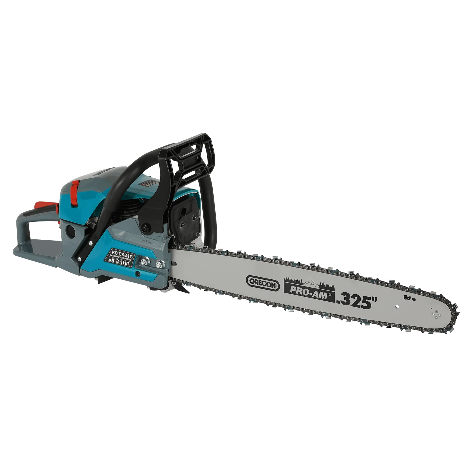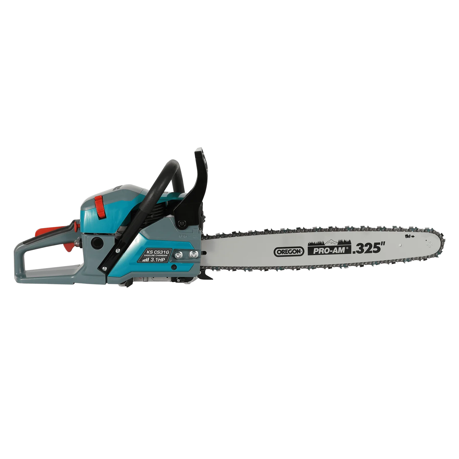 KS CS31G bensiinimootorsaag on varustatud kütusesäästliku mootoriga, automaatse määrimissüsteemiga, mugava külgkettipingutusega ja lihtsa käivitussüsteemiga. Võrgust sõltumatus muudab mootorsae mobiilseks ja autonoomseks.