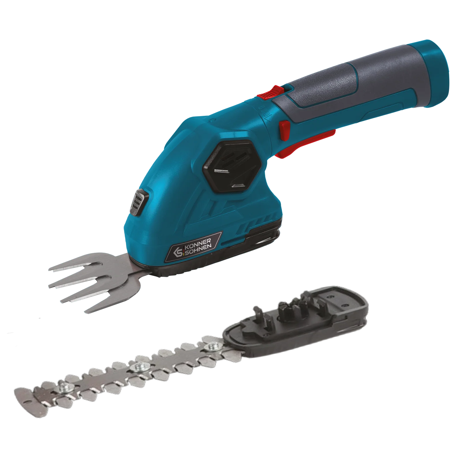 Juhtmeta aiakäärid, millel on integreeritud 2000 mAh aku Saksa kaubamärgilt Könner & Söhnen®, tagavad pikaajalise töö ilma sagedase laadimiseta. Pöörlev käepide võimaldab mugavat kasutamist igas asendis, samas kui kiire teravahetus tagab mitmekülgsuse. Laadimisindikaator aitab jälgida energiataset. Kolmekordne kaitsesüsteem (turvalukk, turvalüliti, toitelüliti) tagab maksimaalse ohutuse ja lukustusnupp hoiab ära juhusliku aktiveerimise. Need käärid on ideaalsed aedade, põõsaste ja dekoratiivtaimede hooldamiseks, muutes need usaldusväärseks abiliseks kõigi teie aiatööde jaoks.