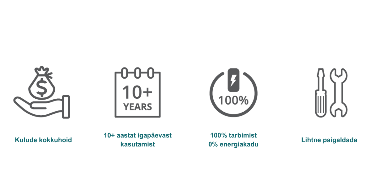 • Ei nõua investeeringuid keerukasse paigaldusse – paigaldamine võtab vaid mõne minuti