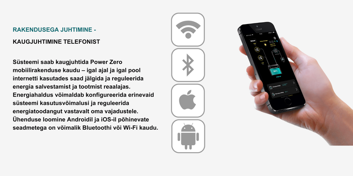 Seade võimaldab kaugjuhtimist igal ajal ja igast kohast läbi interneti, võimaldades jälgida energia salvestamist ja tootmist reaalajas. Energiahaldus võimaldab kohandada süsteemi kasutusvõimalusi, kohandades energiaväljundit vastavalt teie vajadustele. Ühenduse loomine Androidi ja iOS-i seadmetega on võimalik Bluetoothi ​​või Wi-Fi kaudu.